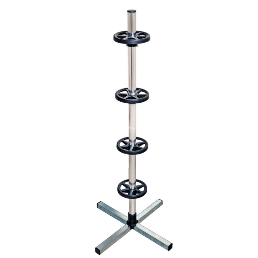 Poskrbite za urejeno garažo in daljšo življenjsko dobo vaših pnevmatik! Stojalo za platišča in pnevmatike in platišča omogoča prostorsko varčno shranjevanje 4 kompletnih koles s širino pnevmatike do 225 mm.