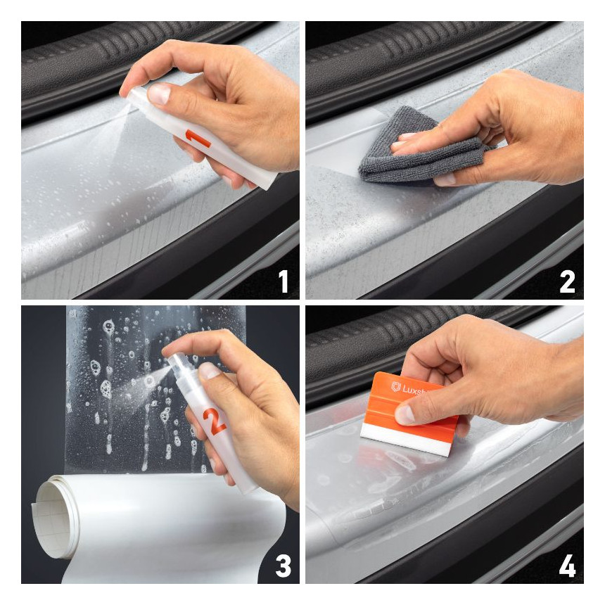 Folijo hitro namestite na odbijač s pomočjo milnice, ki vam omogoča, da se pri montaži tudi zmotite a izdelek na koncu še vedno popolno namestite.